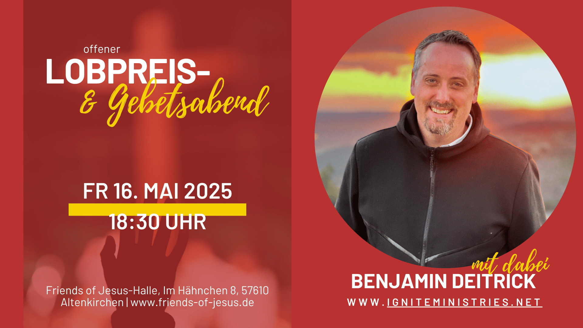 Herzliche Einladung zu unserem Weihnachts-Gottesdienst an Heiligabend 24. Dez. 2025 | 16.00 - ca. 17.30 Uhr Friends of Jesus-Halle, Im Hähnchen 8, 57610 Altenkirchen |